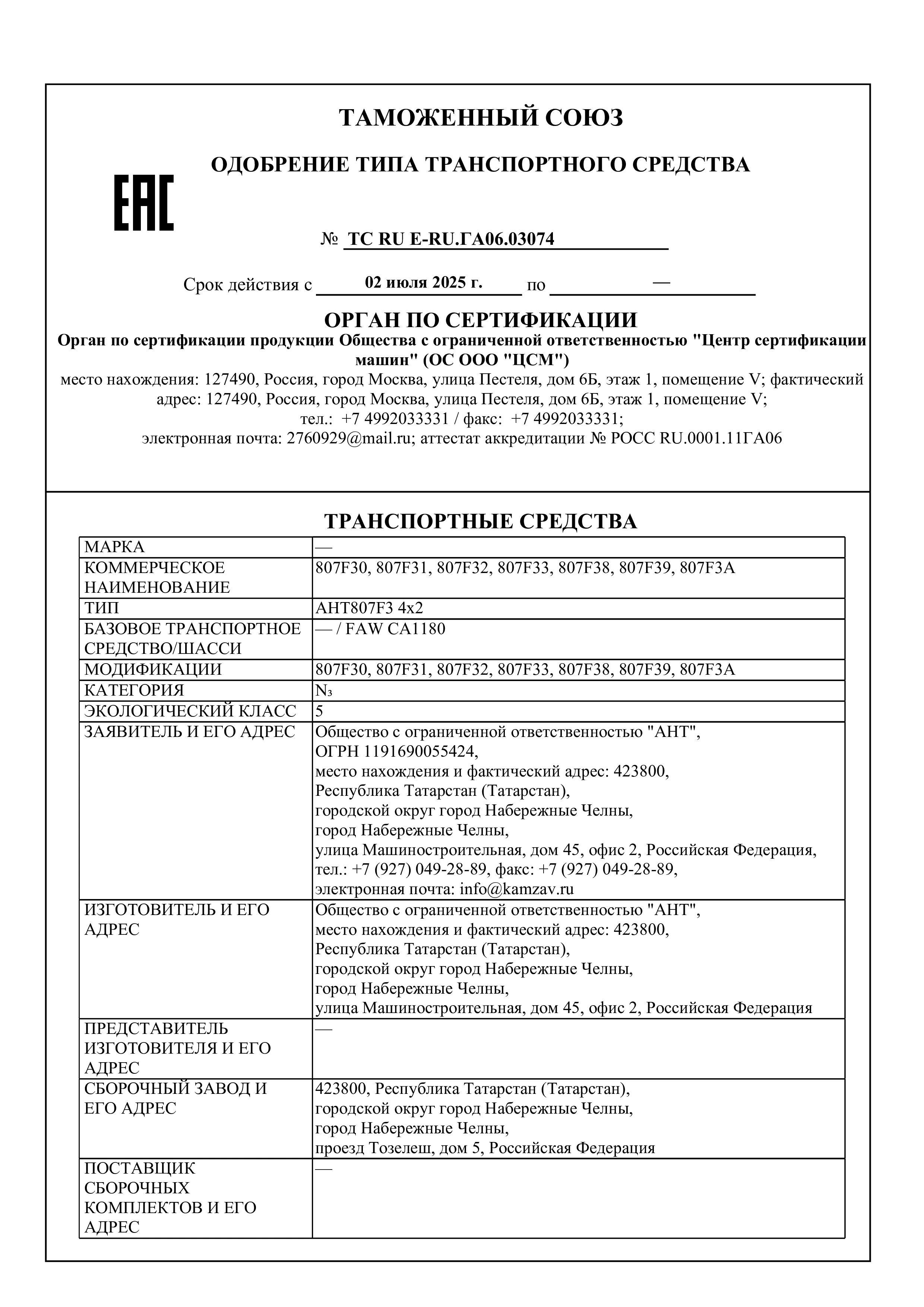 | Производитель шасси | FAW |